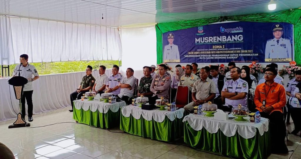 KONAWE UTARA – Pemerintah Daerah (Pemda) Kabupaten Konawe Utara (Konut) menggelar Musyawarah Perencanaan Pembangunan (Musrenbang) Rencana Kerja Pemerintah Daerah (RKPD) tingkat kecamatan se-Kabupaten Konawe Utara di Zona I yang terbagi Kecamatan Landawe, Wiwirano, dan Kecamatan Langgikima sebagai bagian dari tahapan penyusunan RKPD Tahun 2027.